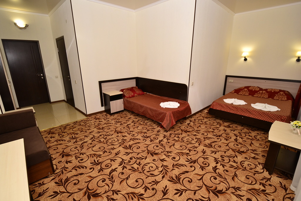 | Комфорт 3-местный | 20 кв.м. | 3 чел. | Мебель (зеркало, кровати односпальные, прикроватные тумбочки, стол, стулья, шкаф), Оборудование (мин... | |